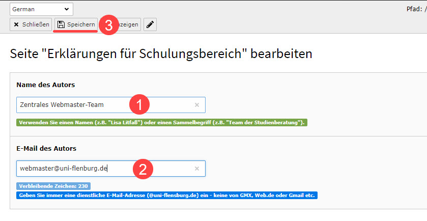 Abbildung 4: Autor/Redakteur und zugehörige E-Mail-Adresse hinterlegen