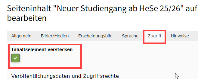 Abbildung 2: Inhaltselement verstecken