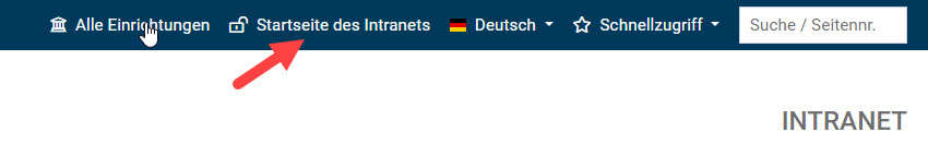 Abbildung 2: Header der Website gibt Auskunft, dass man im Intranet angemeldet ist – Schloss ist offen