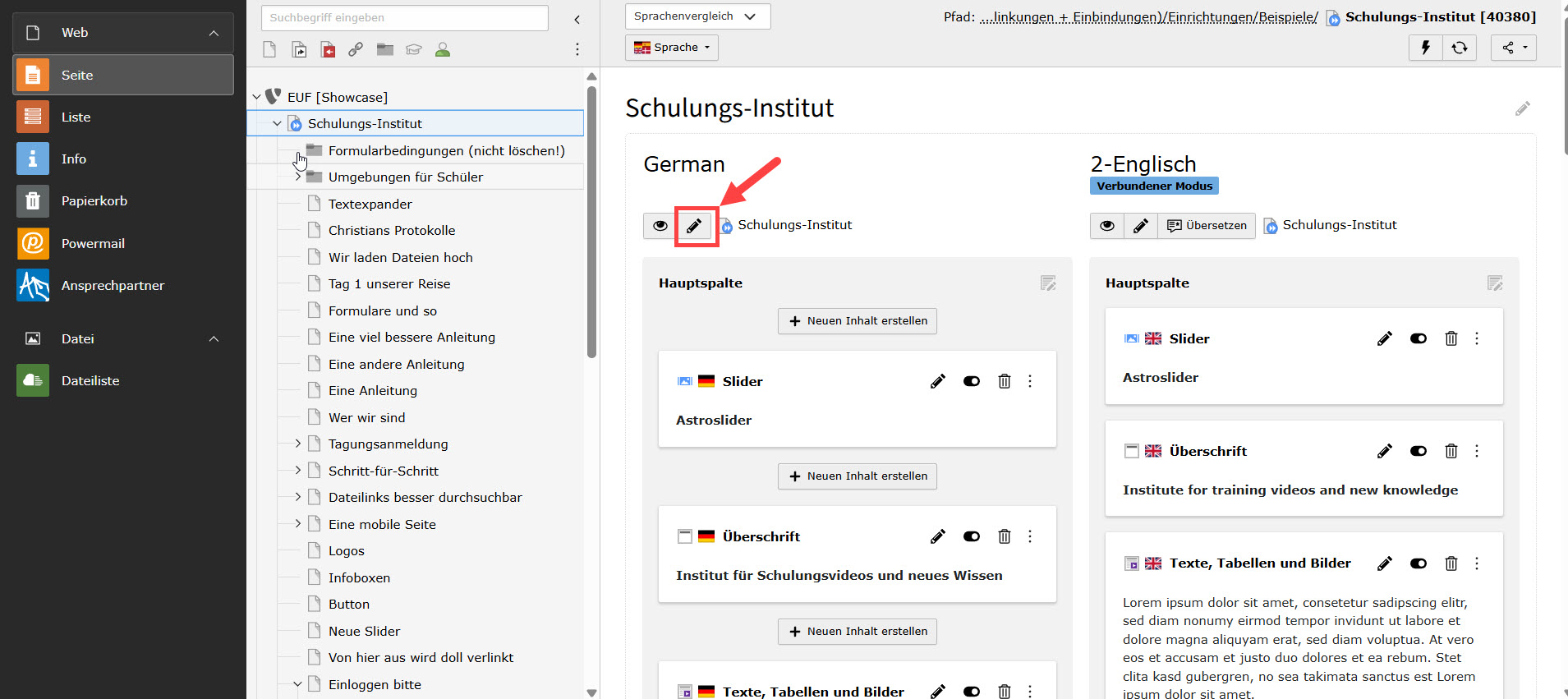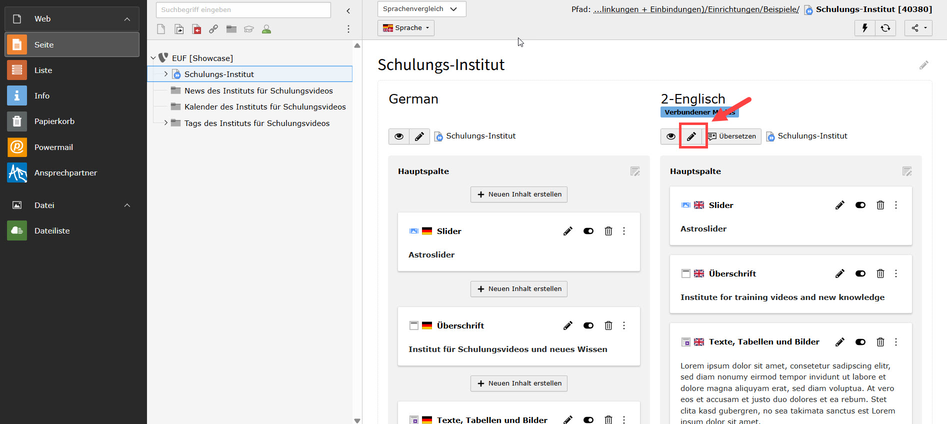 Abbildung 7: Im Link-Browser den "2-Englisch"-Button wählen, um zur englischen Version der Seite zu verlinken