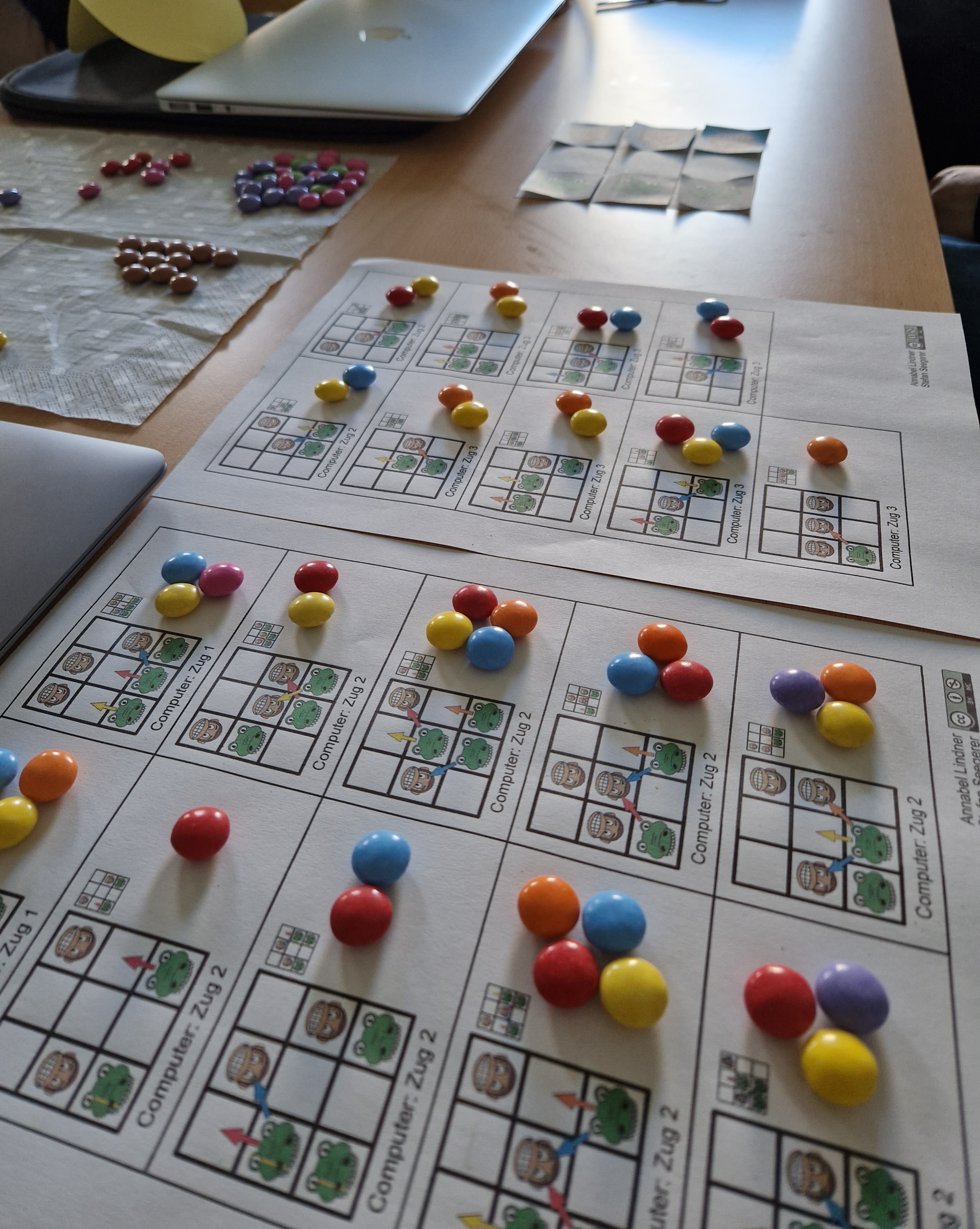 Mit einfachen analogen Mitteln wie Papier und farbigen Schokolinsen lassen sich schon für Schüler*innen der Primarstufe die Funktionsweisen von Algorithmen verstehen.