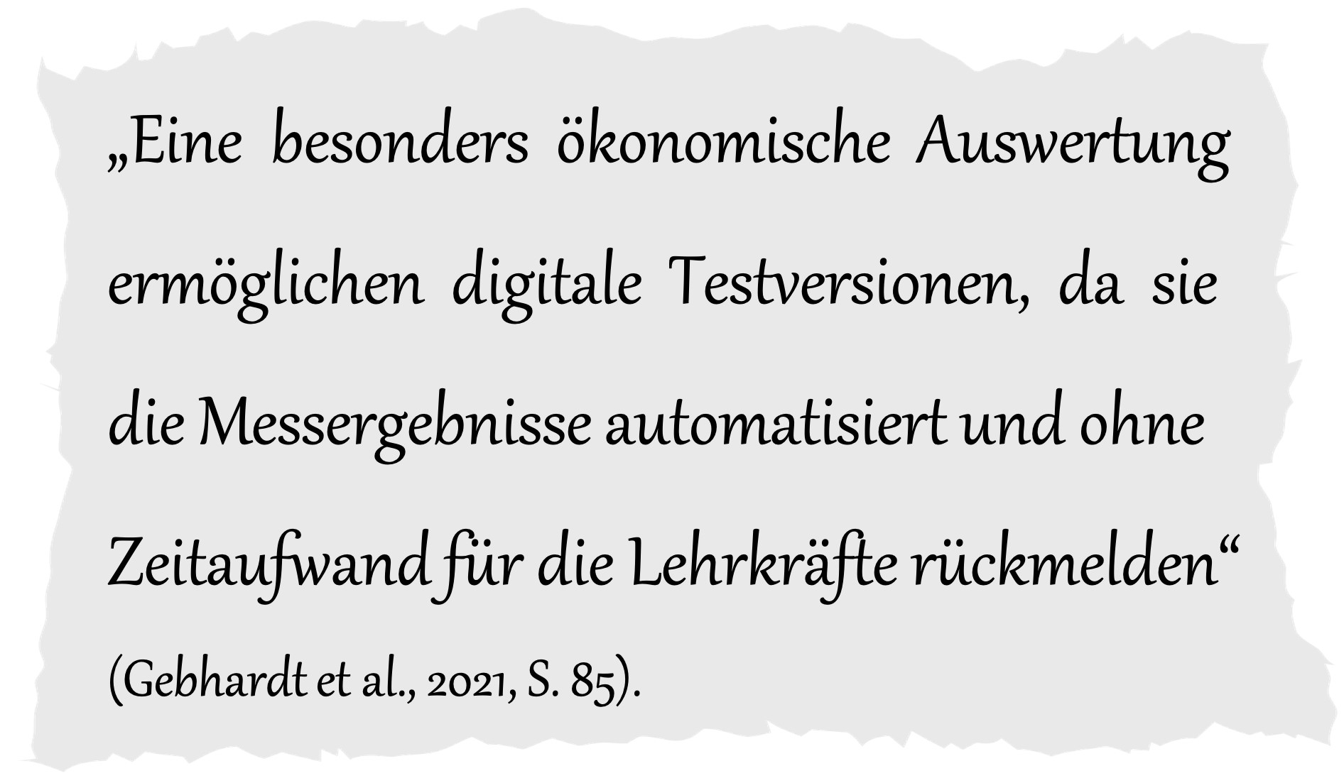 Ein Zitat von Gebhardt et al., in welchem die Auswertungsökonomie von digitalen Testverfahren betont wird.