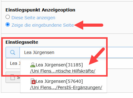 Abbildung 3: Einstiegspunkt mit einer PersIS-Seite verknüpfen