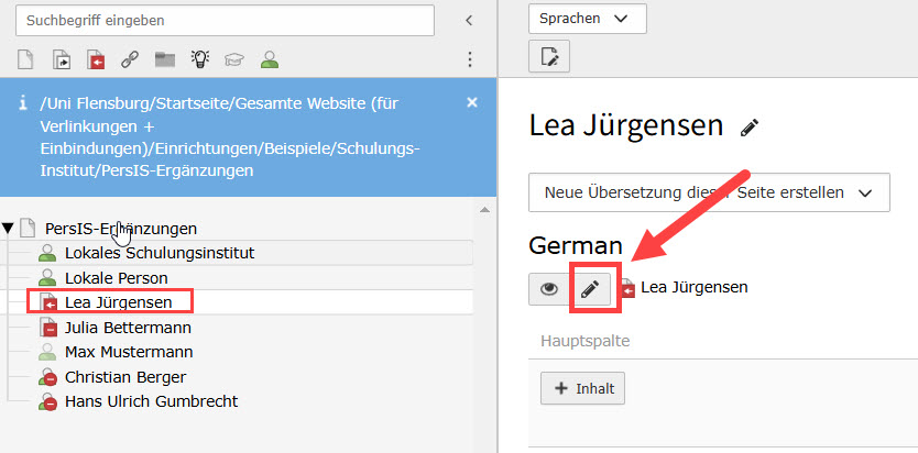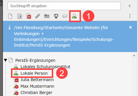Abbildung 1: Anlegen einer PersIS-Seite für den lokalen Personendatensatz