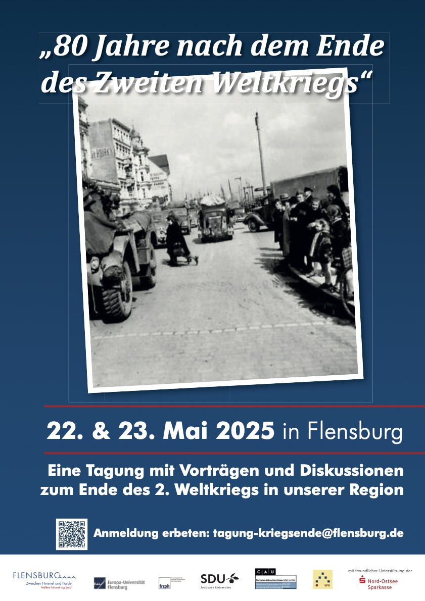Plakat_80_Jahre_Kriegsende_A3.indd „80 Jahre nach dem Ende des Zweiten Weltkriegs“ 22. & 23. Mai 2025 in Flensburg Eine Tagung mit Vorträgen und Diskussionen zum Ende des 2. Weltkriegs in unserer Regi