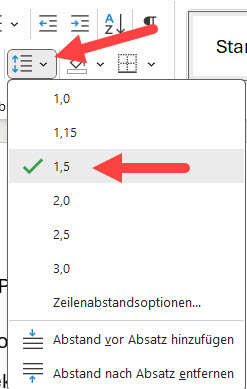 Abbildung 6: Zeilenabstand auf 1.5 einstellen
