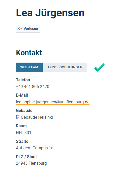 Abbildung 4: Kontaktseite enthält im Beispiel zwei umschaltbare Reiter mit verschiedenen Kontaktdaten, je nach Position