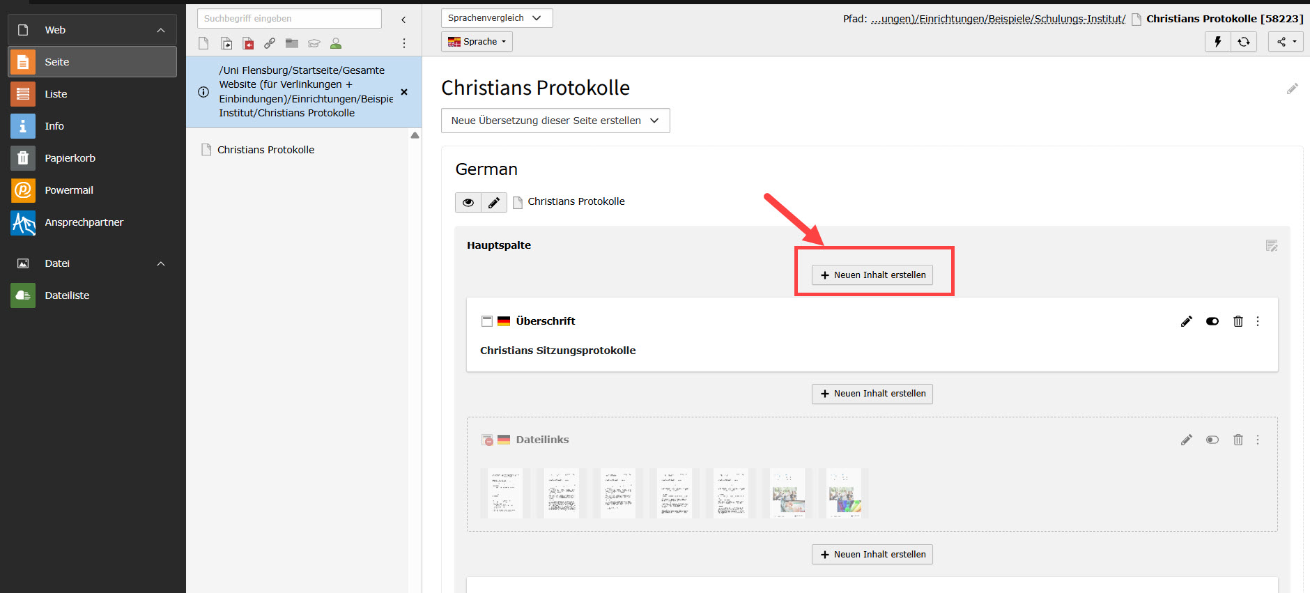 Abbildung 5: Inhaltselement vom Typ "Dateilinks" erstellen