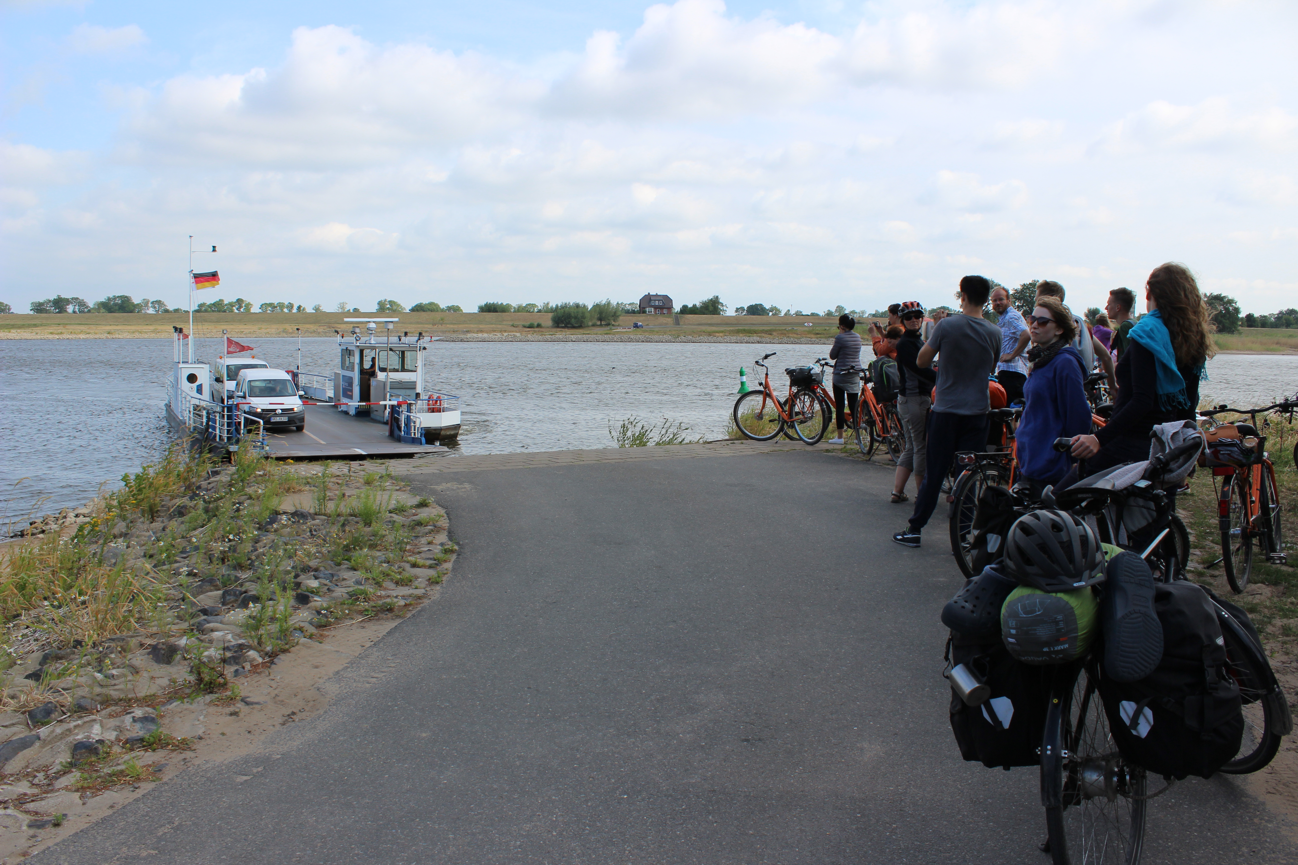 Das Foto zeigt die Gruppe des Sommercamps "Nachhaltigkeit erfahren" bei der Elbfähre.