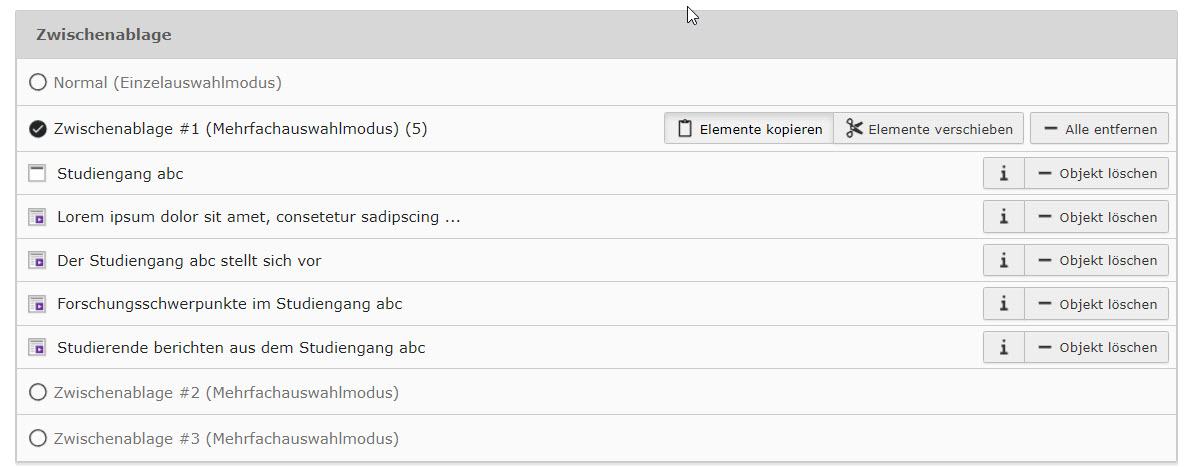 Abbildung 4: Ansicht der Zwischenablage, nachdem in diese Elemente übertragen wurden