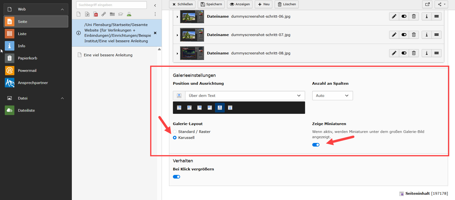 Abbildung 1: Aktivieren des Bilderkarussells