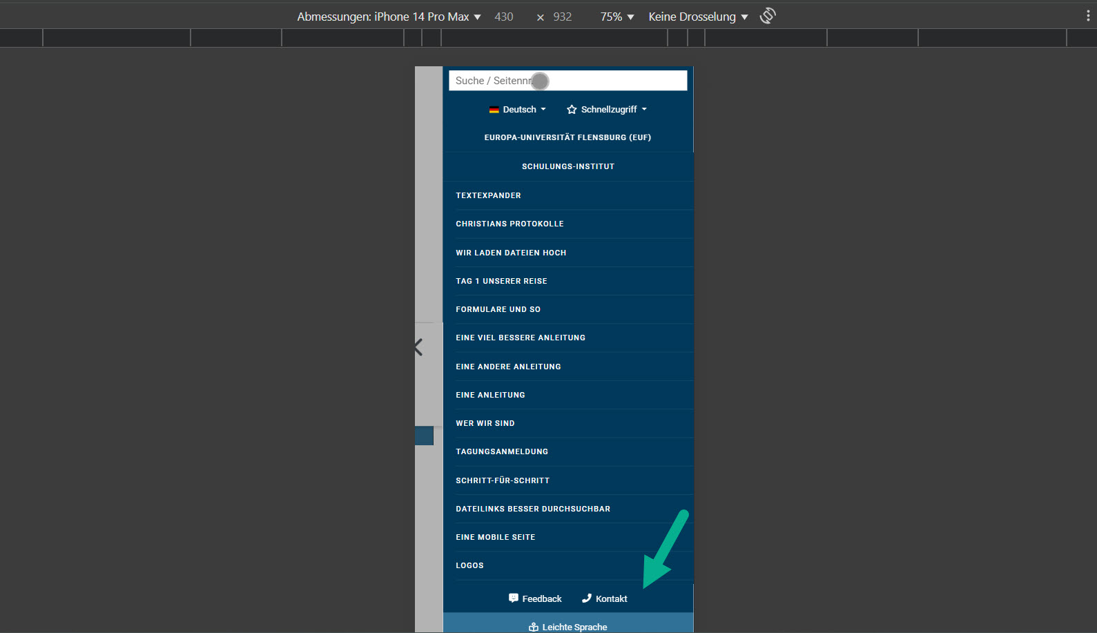 Abbildung 2: In der mobilen Version befindet sich der Kontaktbutton im unteren Bereich des „Burger-Menüs“