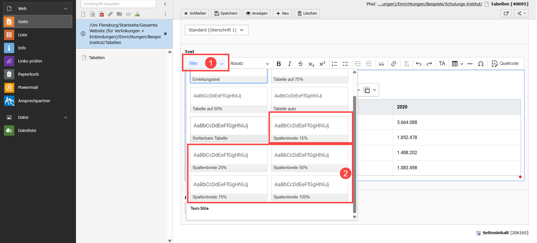 Abbildung 8: Anpassung der Spaltenbreite über den Bereich "Stile"