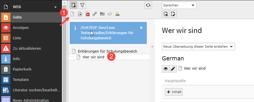 Abbildung 1: Anlegen der "Wer wir sind"-Seite