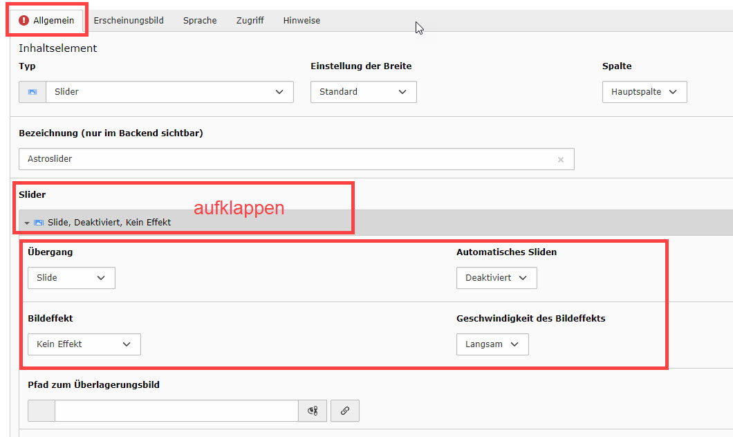 Abbildung 2: Inhaltselement "Slider" erstellen