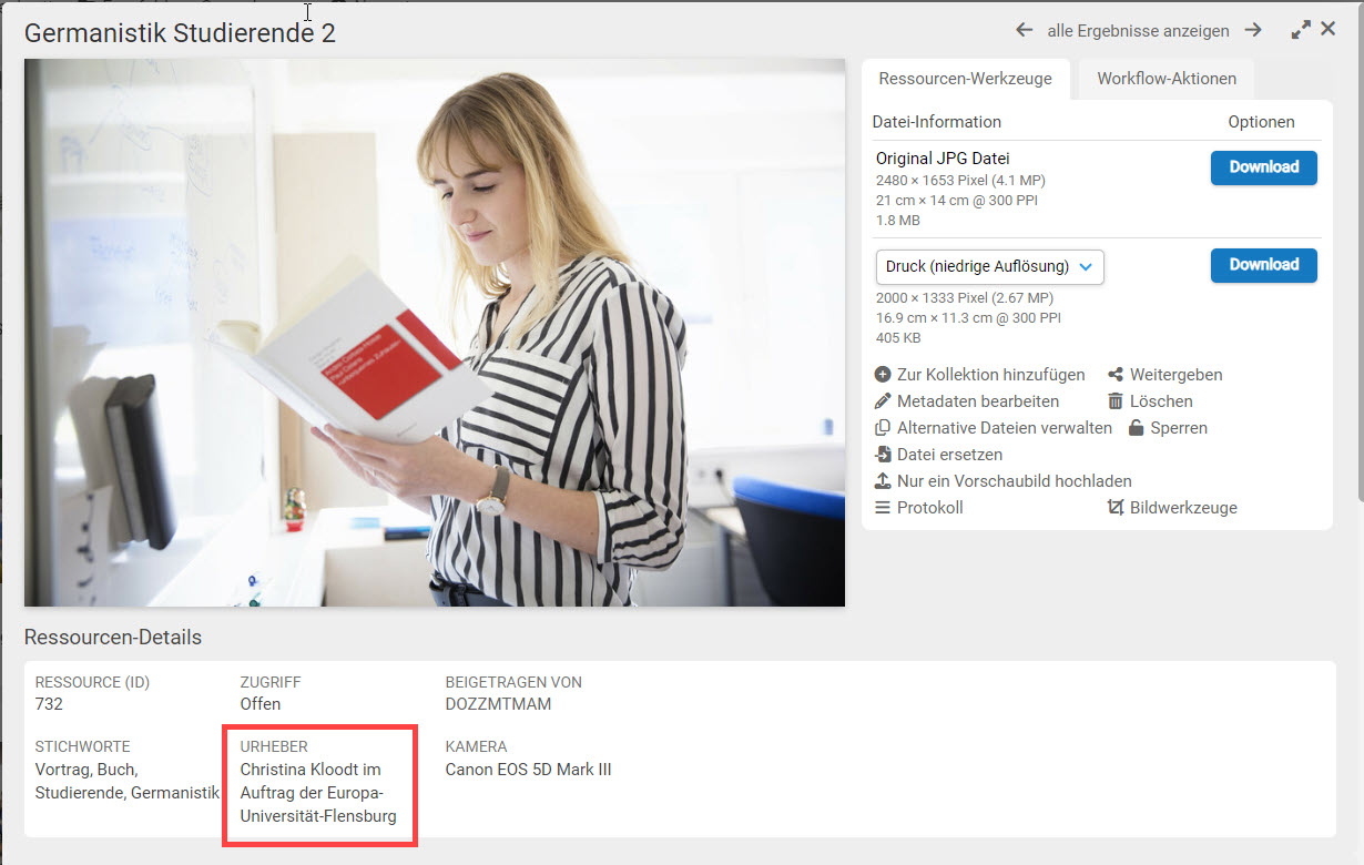 Abbildung 1: Angabe des Urhebers im Bildarchiv