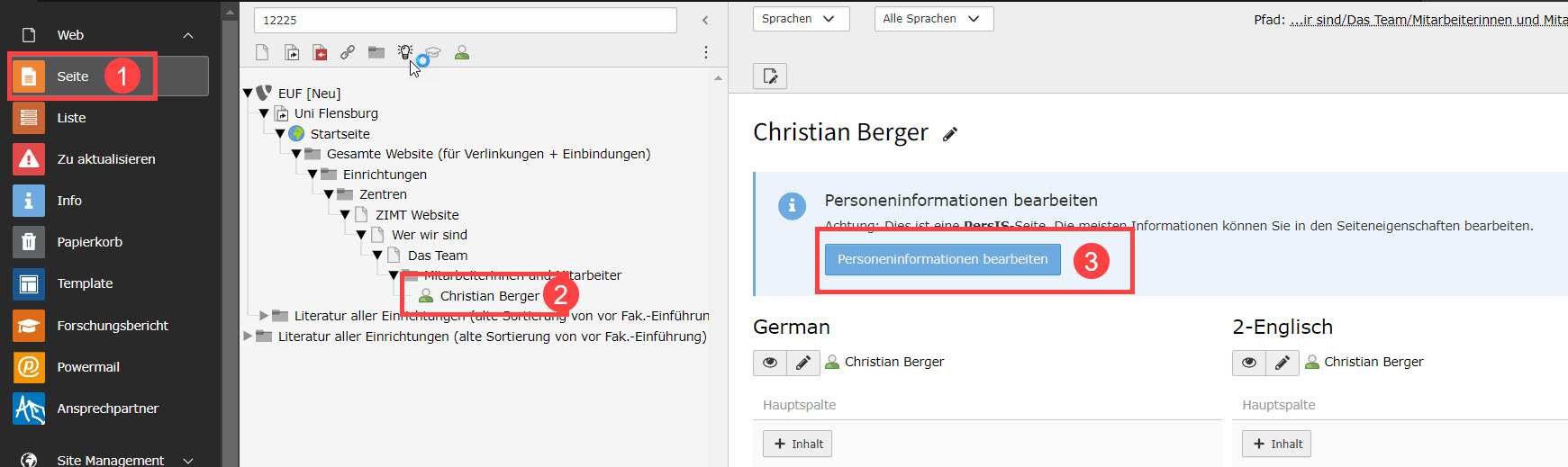 Abbildung 2: Öffnen der Registerkarte "PersIS" & Personeninformation ausklappen
