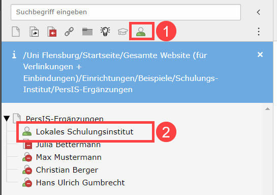 Abbildung 1: Anlegen einer PersIS-Seite für den lokalen Einrichtungsdatensatz