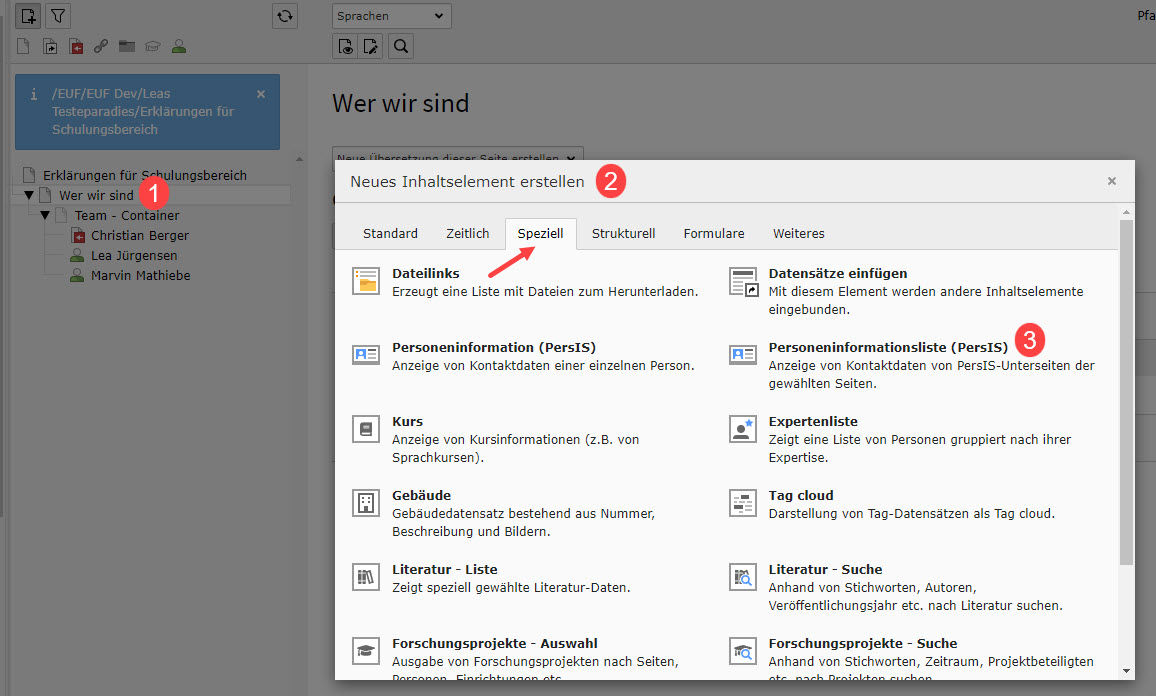 Abbildung 5: Element vom Typ "Personeninformationsliste (PersIS)" erstellen