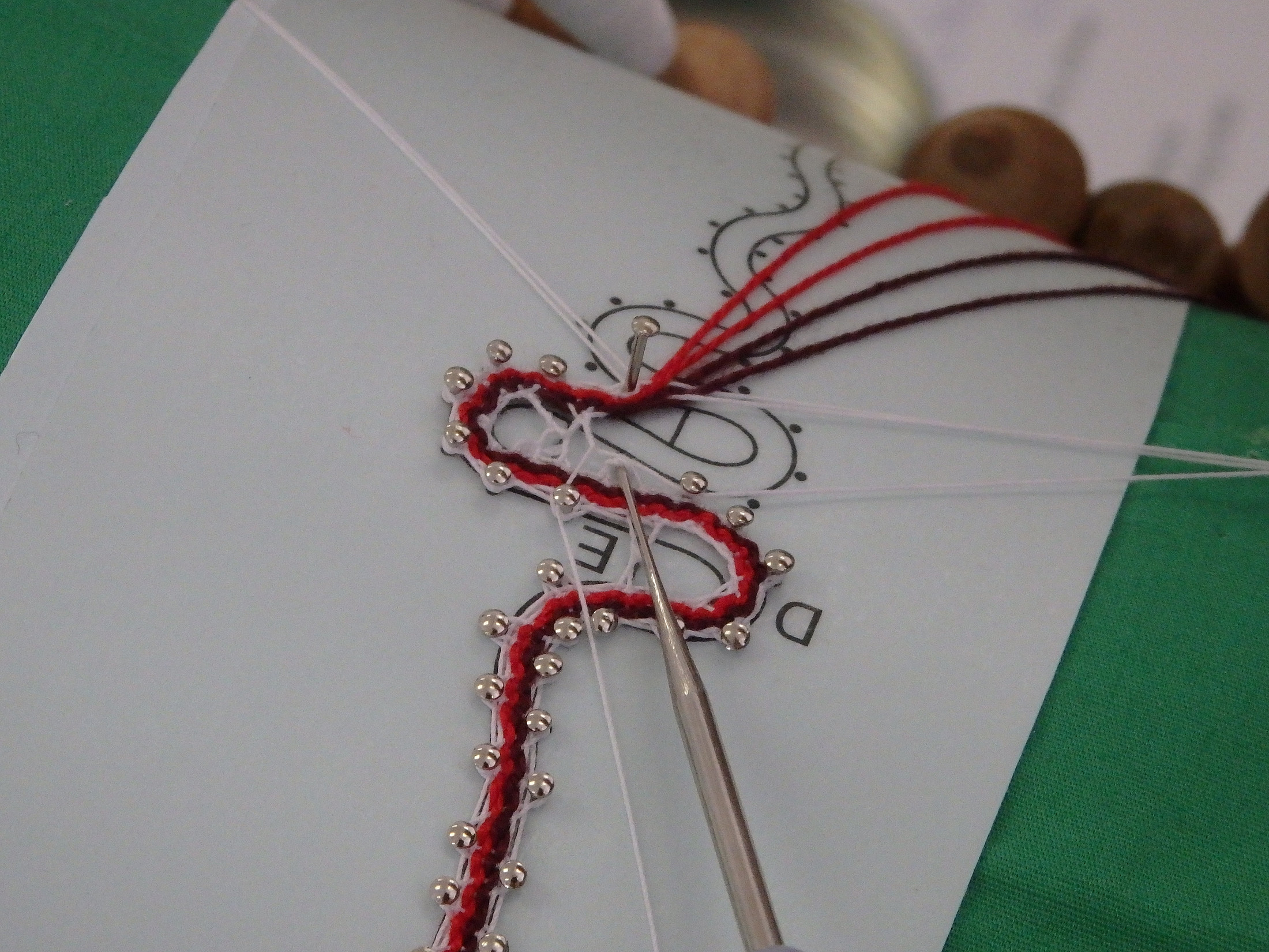 Beeindruckt von den handwerklichen Fähigkeiten und Möglichkeiten der Technik, war der Ehrgeiz gepackt. Stolz vollendeten alle Teilnehmenden ihr Werk unter großem Lob der Klöppellehrerinnen.