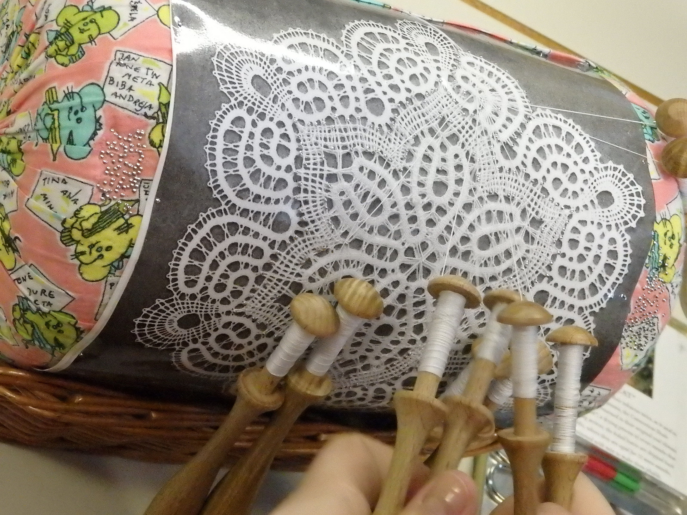 In Idrija bekamen wir die Gelegenheit selbst tätig zu werden und eine Klöppelarbeit der Idrija-Spitze herzustellen.