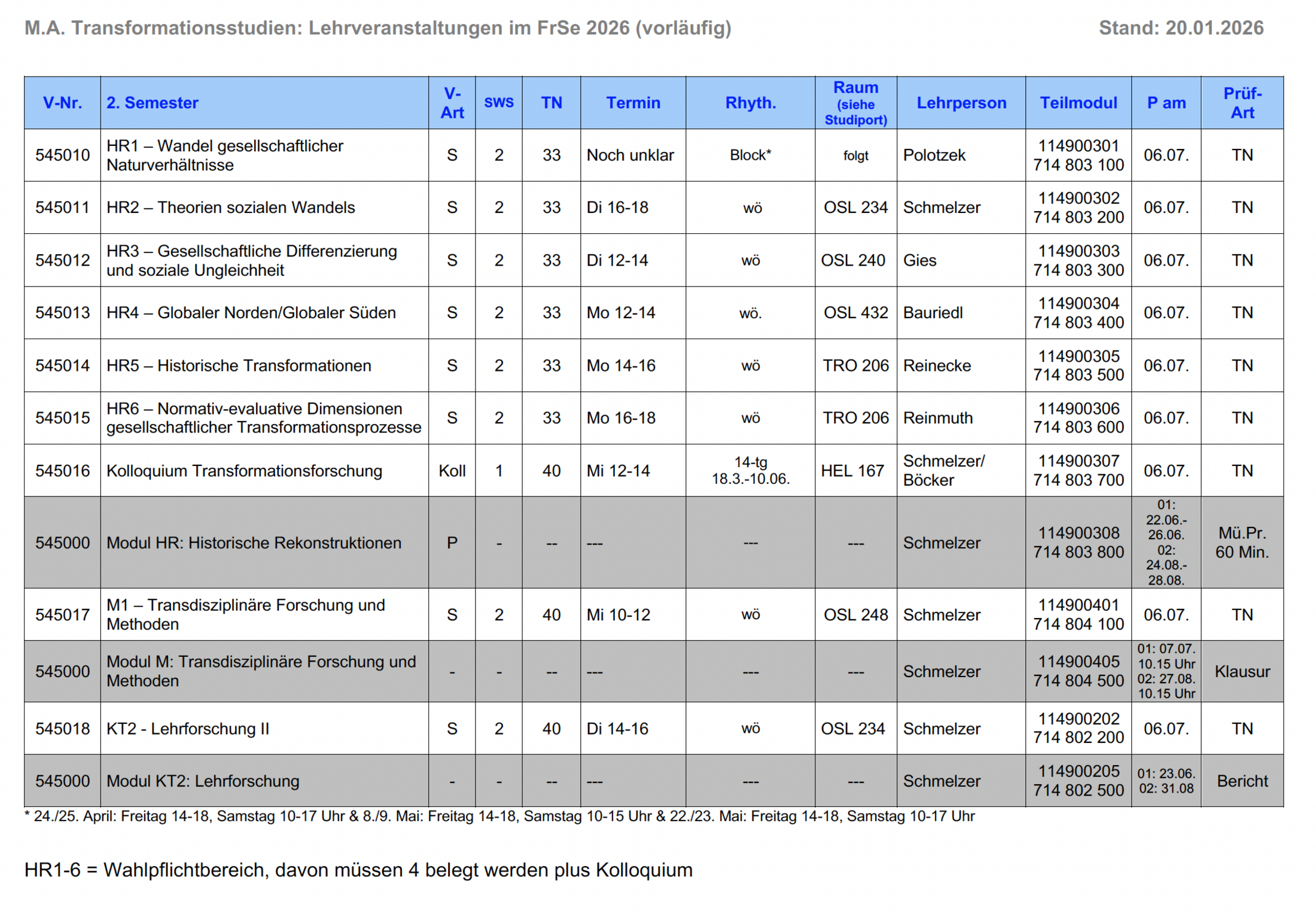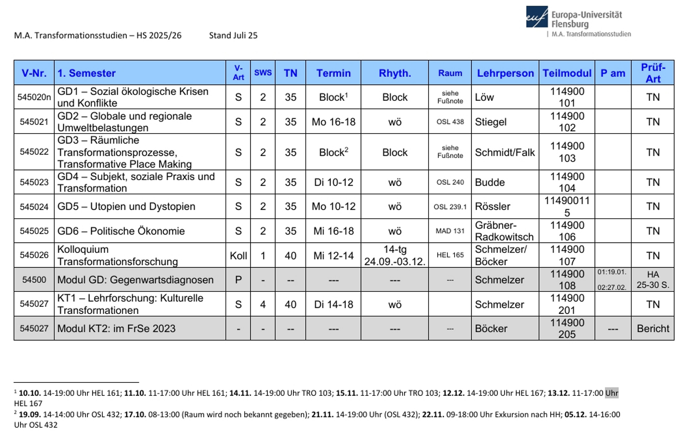 Auf dieser Seite sind Informationen gesammelt, die Studierenden des M.A. Transformationsstudien bei der Organisation ihres Studiums helfen sollen. Wählen Sie einen der Themenbereiche aus, um mehr darüber zu erfahren.