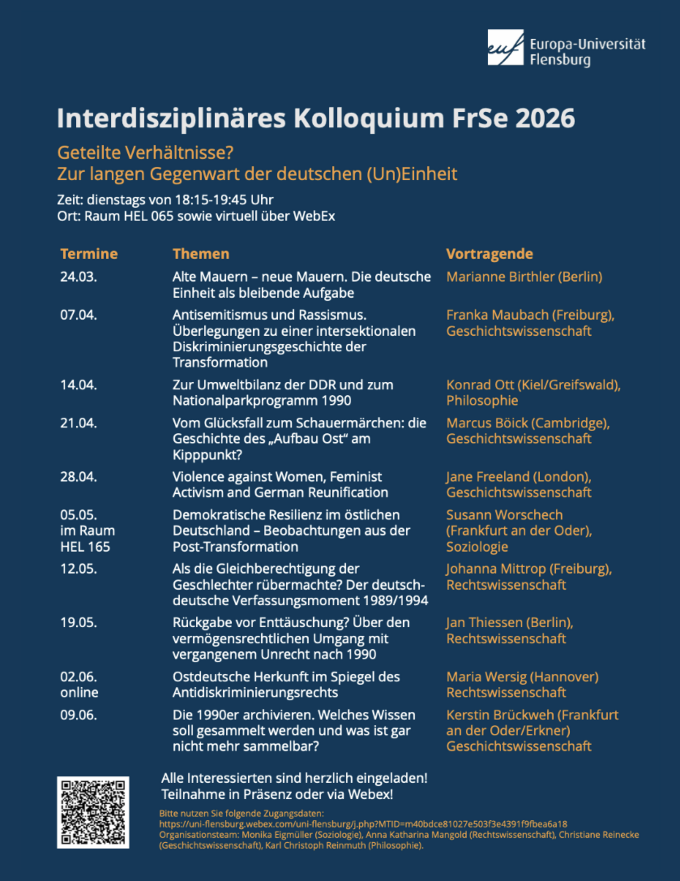 Im Frühjahrssemester 2026 ist das Thema des interdisziplinären Kolloquiums “Geteilte Verhältnisse? Zur langen Gegenwart der deutschen (Un)Einheit”.