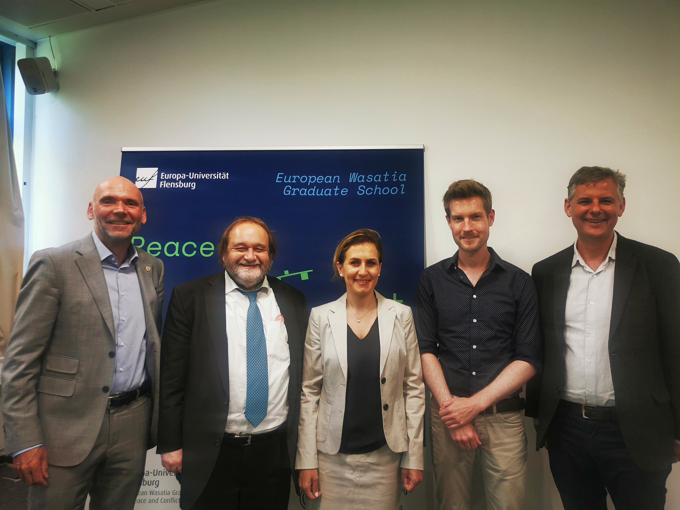 Die European Wasatia Graduate School for Peace and Conflict Resolution an der Europa-Universität Flensburg (EUF) hat am Mittwoch, 29.05.2024, die zweite Kohorte von Studierenden begrüßt. Insgesamt wurden 13 Studierende aus Israel, Palästina, Albanien, Südafrika, Jemen, Irak, Serbien und Deutschland begrüßt. An dem feierlichen Empfang nahmen auch die Vizepräsidentin des Deutschen Bundestages, Aydan Özoğuz, MdB, die Bischöfin im Sprengel Schleswig und Holstein, Nora Steen, und Universitätspräsident Prof. Dr. Werner Reinhart teil. (weiterlesen)