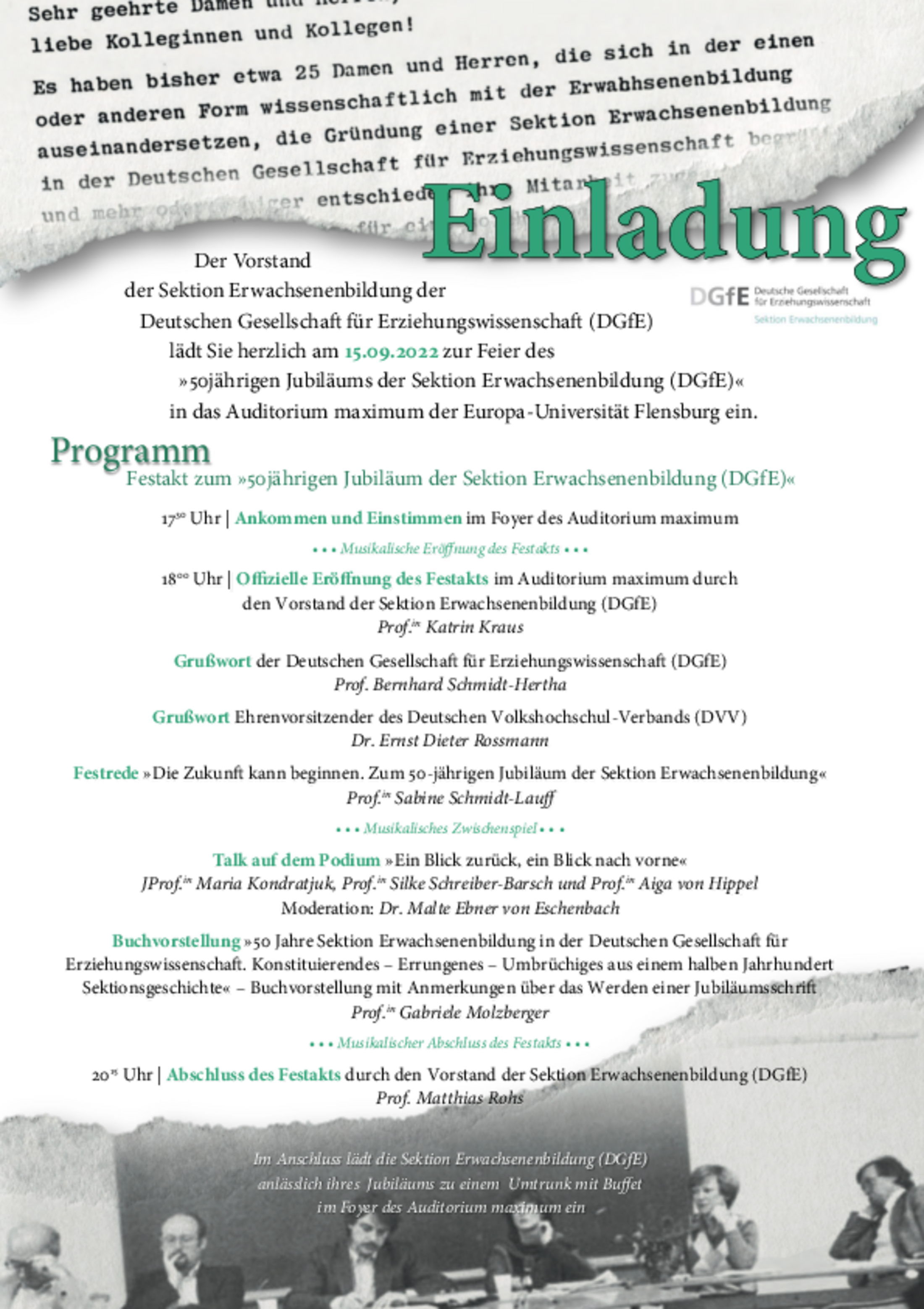 - Prof. Dr. Gabriele Molzberger (Bergische Universität Wuppertal): Manifestationen und Heilsversprechen – eine Toposanalyse zur Renaissance der Bildung in der Erwachsenenbildung
