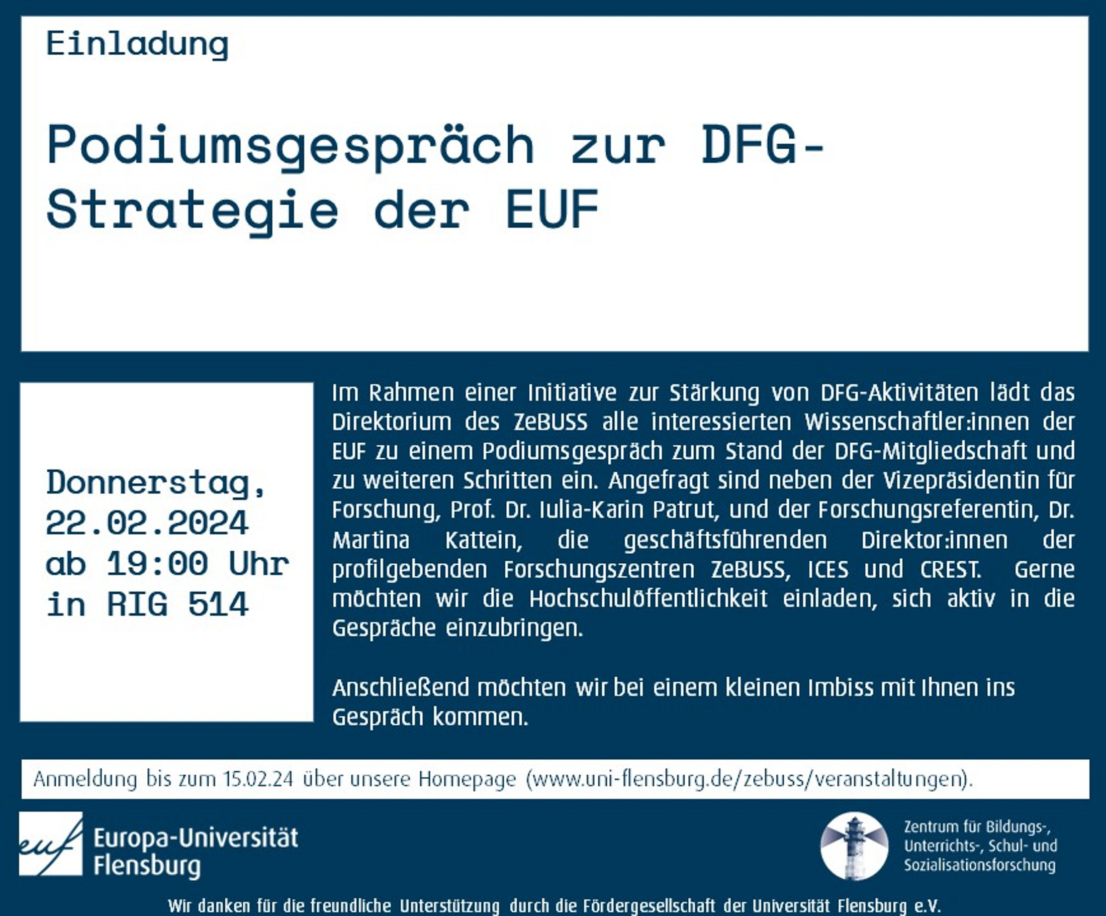 | 15.00 – 15.45 Uhr | Georg Breidenstein zu DFG und Strategie für das ZeBUSS |