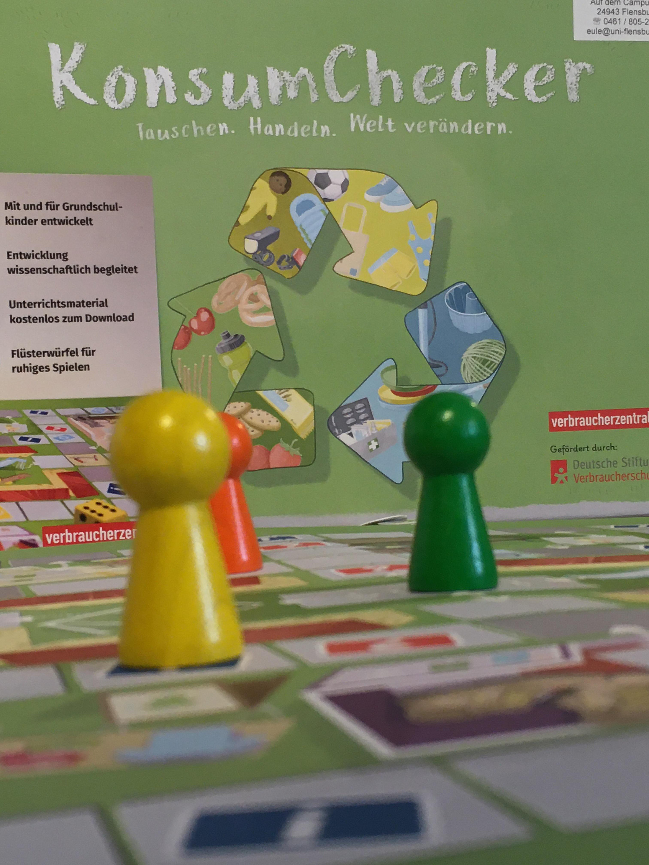 In „KonsumChecker“ geht es darum, seinen ökologischen Handabdruck zu vergrößern, indem man mit den Mitspieler:innen handelt, Aufgaben erledigt und nachhaltig und umweltbewusst in der Welt agiert, um Punkte zu sammeln. Das Spiel regt an, kreativ und bewusst mit den vorhandenen Ressourcen umzugehen.
