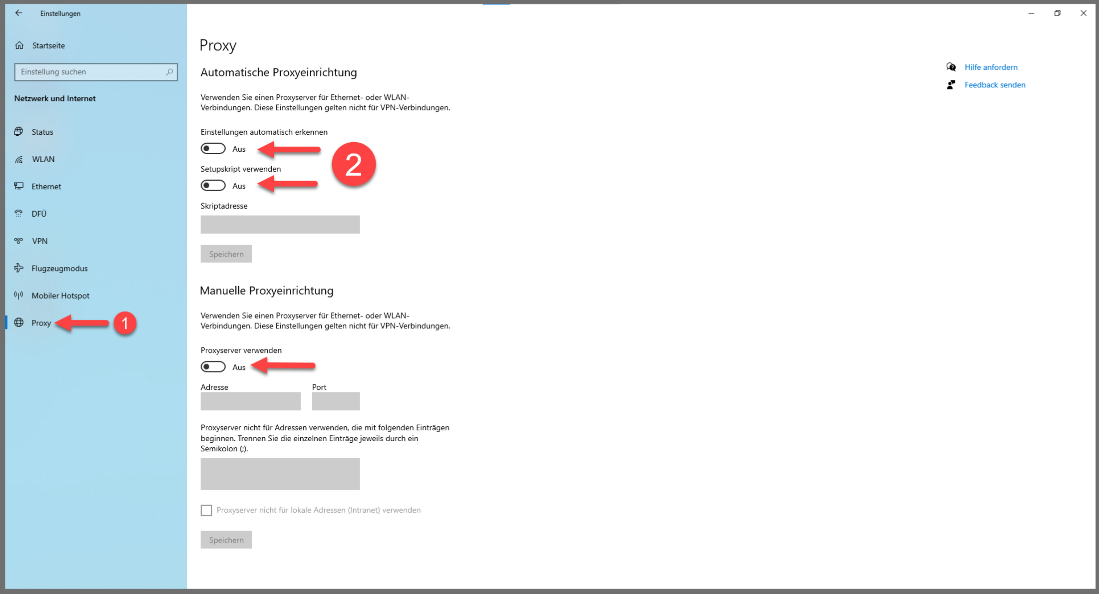 3. Schritt: Proxy ausschalten