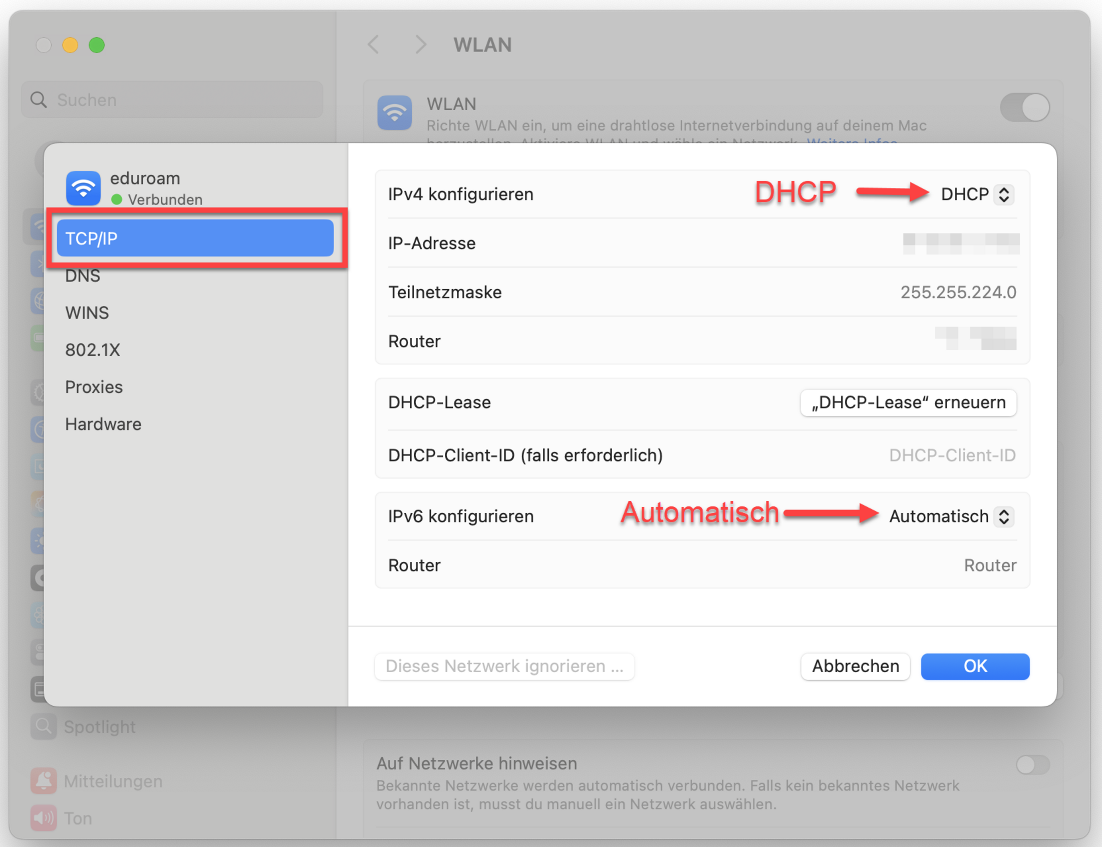 - IPv4 konfigurieren auf DHCP