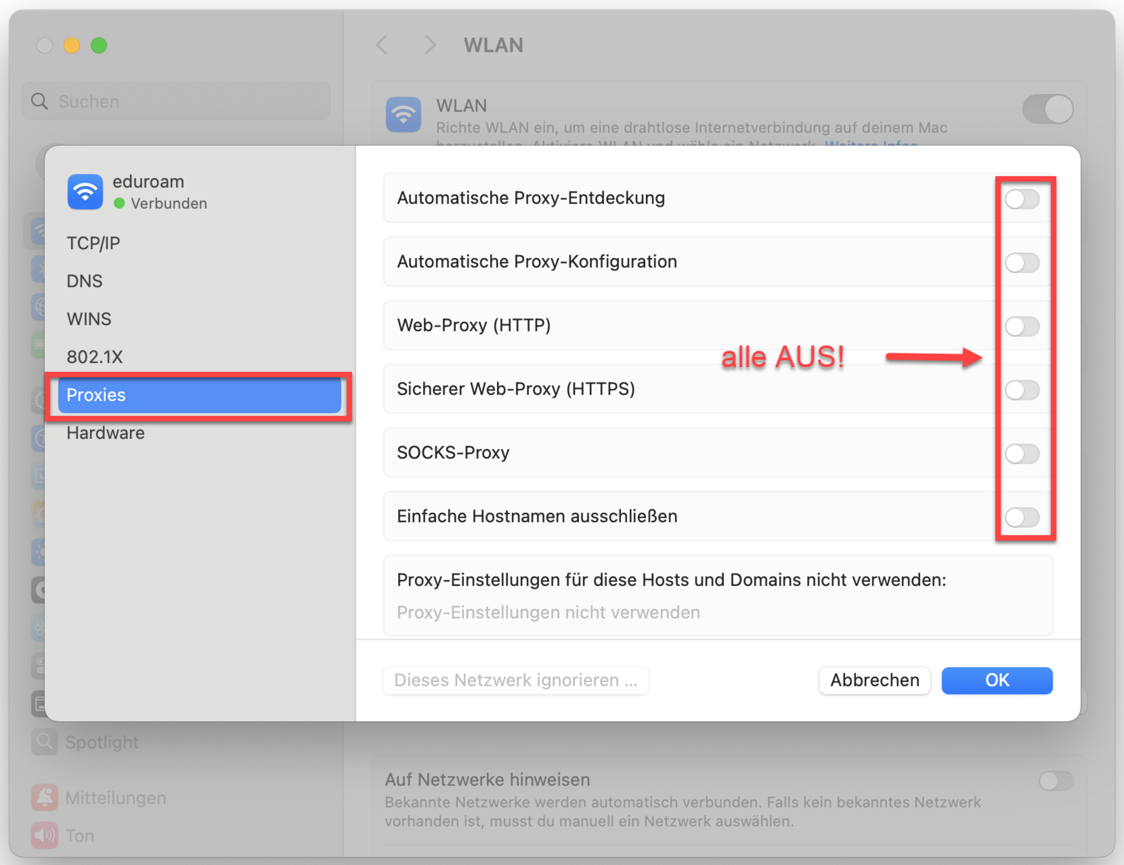 - Automatische Proxy-Konfiguration AUS