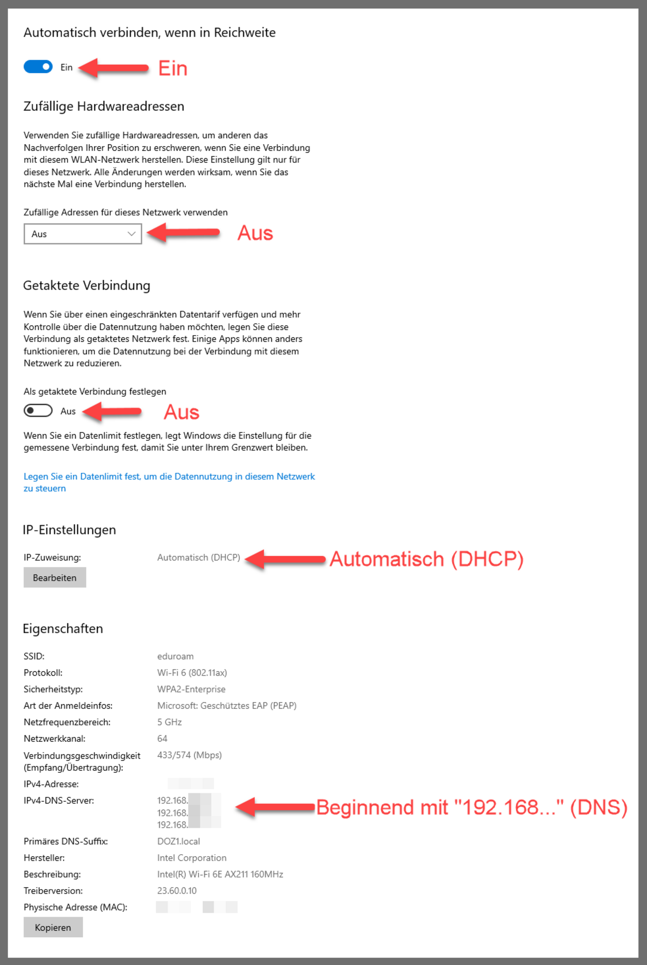 - DNS mit “192.168…” beginnt (Wenn nicht, fortfahren bei Schritt 5)